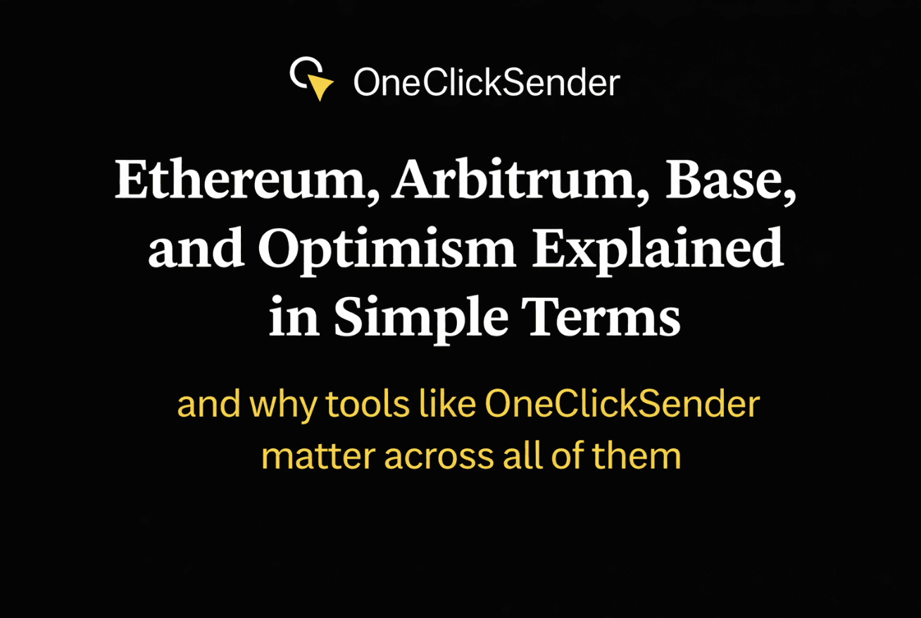 Ethereum, Arbitrum, Base, and Optimism Explained in Simple Terms: and why tools like OneClickSender matter across all of them